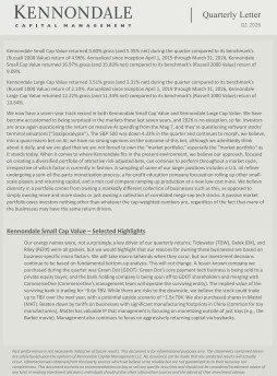 Kennondale Capital Management LLC claims compliance with the Global Investment Performance Standards (GIPS®). To receive a GIPS report, please contact info@kennondale.com. GIPS is a registered trademark of CFA Institute. CFA Institute does not endorse or promote this organization, nor does it warrant the accuracy or quality of the content contained herein.